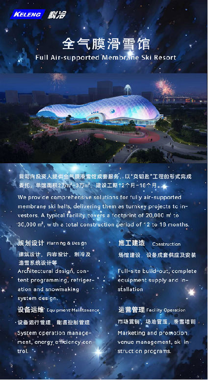 目前公司正承接全气膜滑雪馆交钥匙工程,为项目投资人提供包括设计、建造、运营和设备运维在内的成套服务。这一全方位的服务模式,旨在为投资者提供更加便捷、高效的项目解决方案,共同推动冰雪产业的快速发展。