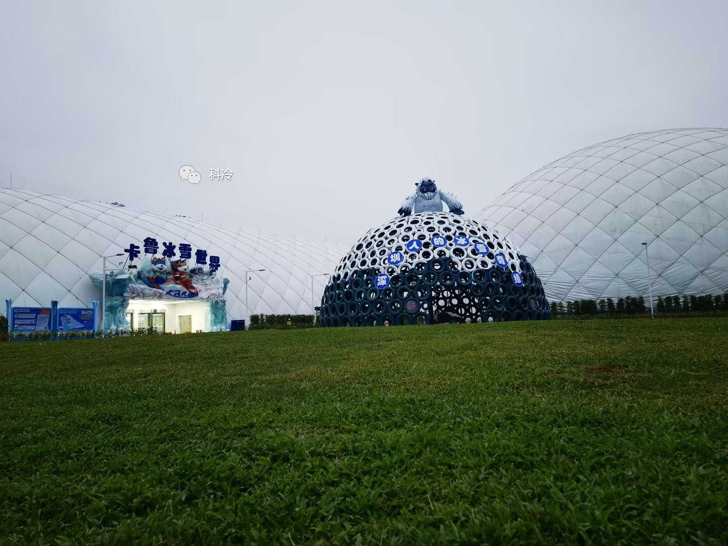 观澜卡鲁冰雪世界位于深圳市龙华区,占地面积1.2平方米,有滑雪馆和服务馆组成。项目采用自主研发的科冷保温气膜技术建造。